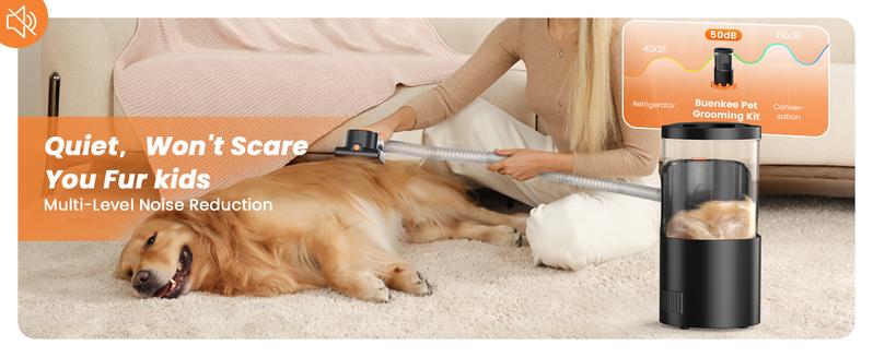 - 14Kpa Strong Suction for a Hair-Free, Healthy Home: Experience the ultimate cleaning power with Buenkee dog grooming vacuum, featuring a powerful suction strength of 14Kpa that easily lifts even the thickest pet fur from carpets, upholstery, and those hard-to-reach corners. The innovative 3-layer filtration system, efficiently capturing 99.9% of hair and debris, ensures your home remains clean and allergen-free. Enjoy a tidy, healthy living space with every use!