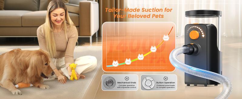 - Infinite Suction Adjustment for Customized Grooming: Unlike most products that offer only 1-3 fixed suction levels, Buenkee dog grooming vacuum features a revolutionary infinite rotation adjustment. This allows you to precisely control the suction power to match the specific needs of your pet's coat, whether it's a delicate short hair or a thick, long fur, providing a more personalized and effective grooming experience.