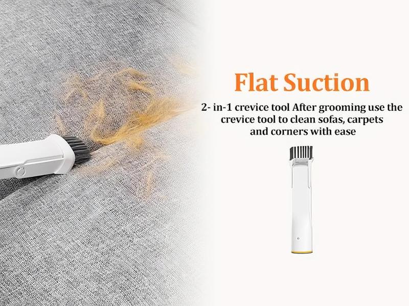 Upgraded Design — “Brush First, Then Vacuum” Our upgraded model adopts a “Brush First, Then Vacuum” design for a gentler and more effective grooming experience. First, brush through your pet’s coat smoothly — no direct suction on the skin. Then, press the button to open the airflow channel and instantly vacuum away loose fur. More comfort for your pet, more convenience for you.