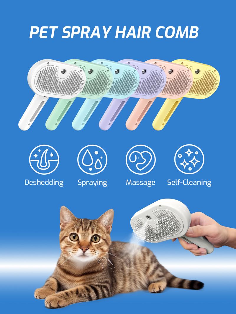 Pet 3-In-1 Spray Massage Comb for Cats & Dogs Prevents Static Electricity Removes Loose Hair with One Click Gentle Skin Care Steam Brush with Cool Mist Rechargeable Steam Pet Grooming Brush