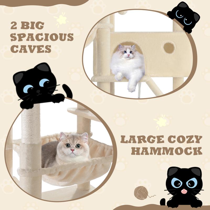 SHA CERLIN 81In/63In Multi-Level Tall Cat Tree Tower with Hammock & Sisal Scratching Posts Larger Cat Condo Furniture for Multi-Cat Play & Rest #Christmasgifts#Tiktokshopblackfriday